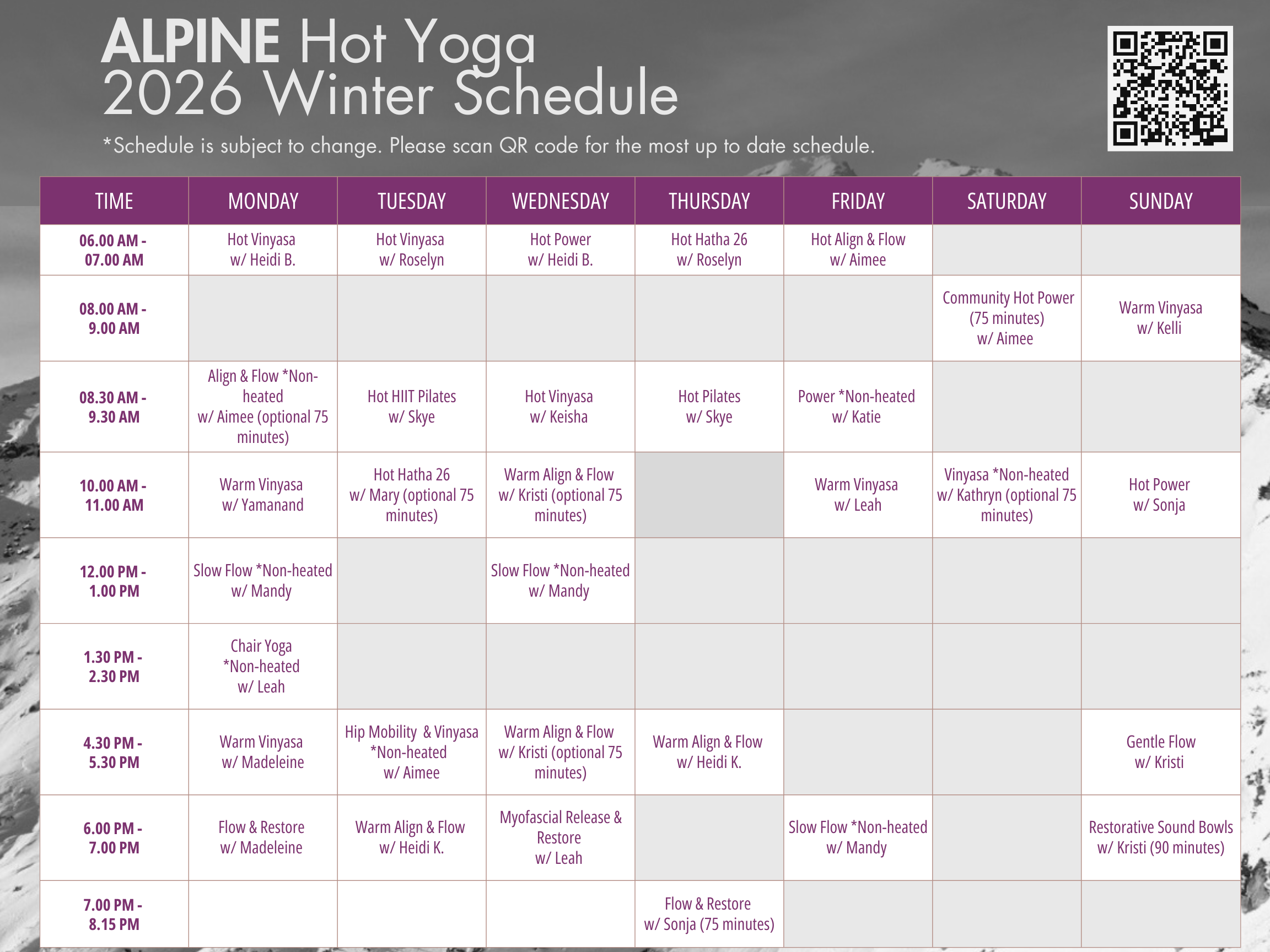 *Schedule subject to change, live schedule below